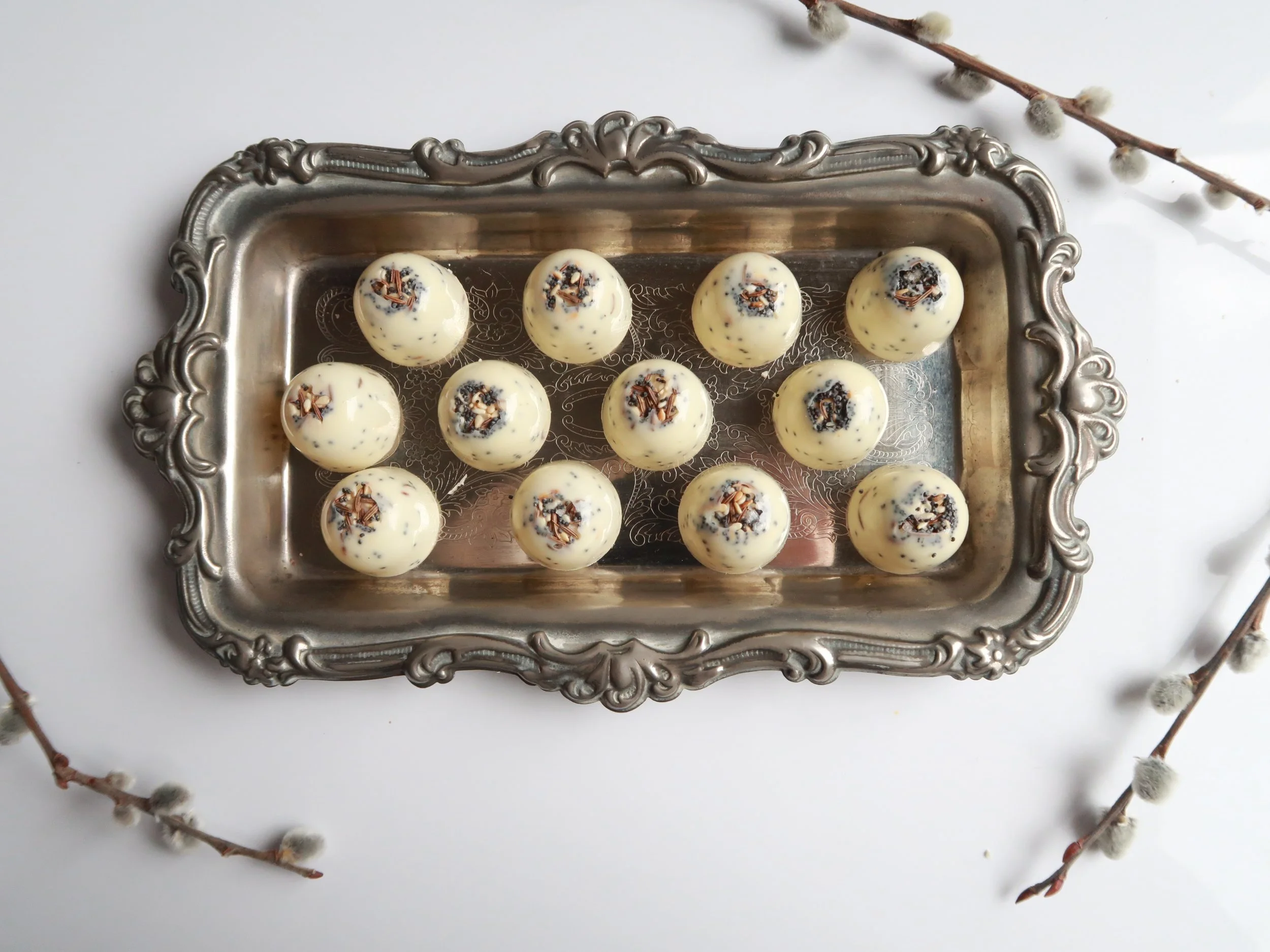 All bonbons contain dairy, and are processed in a facility which processes dairy, wheat, tree nuts, and sesame. Please keep in a cool dry place. Consume within 2-3 weeks of purchasing.
